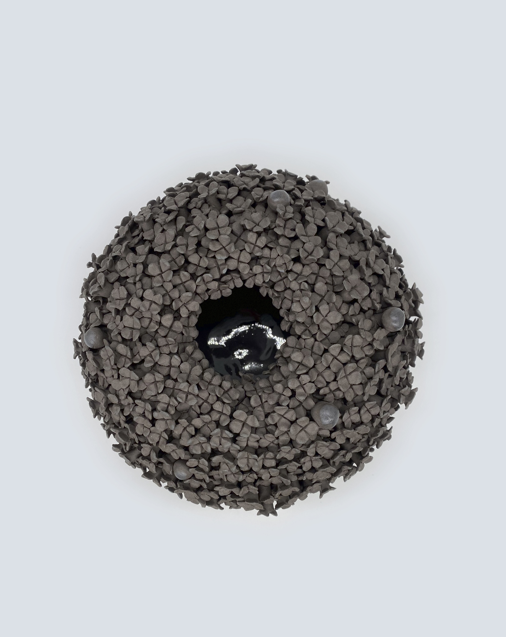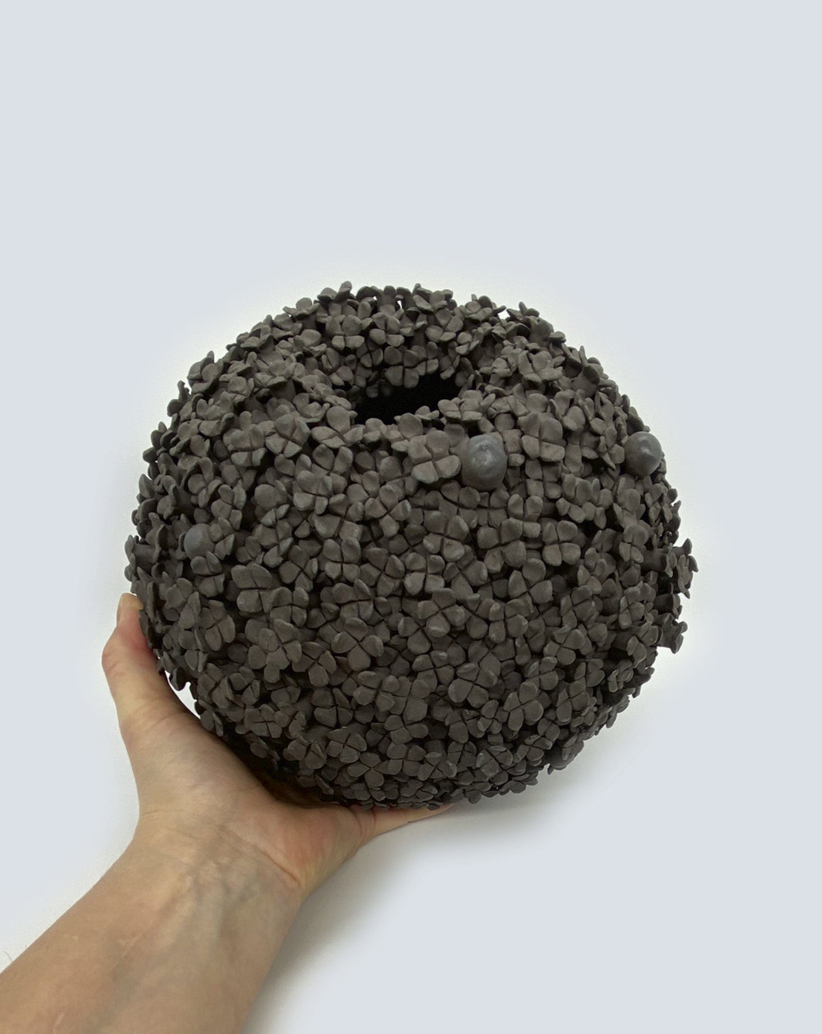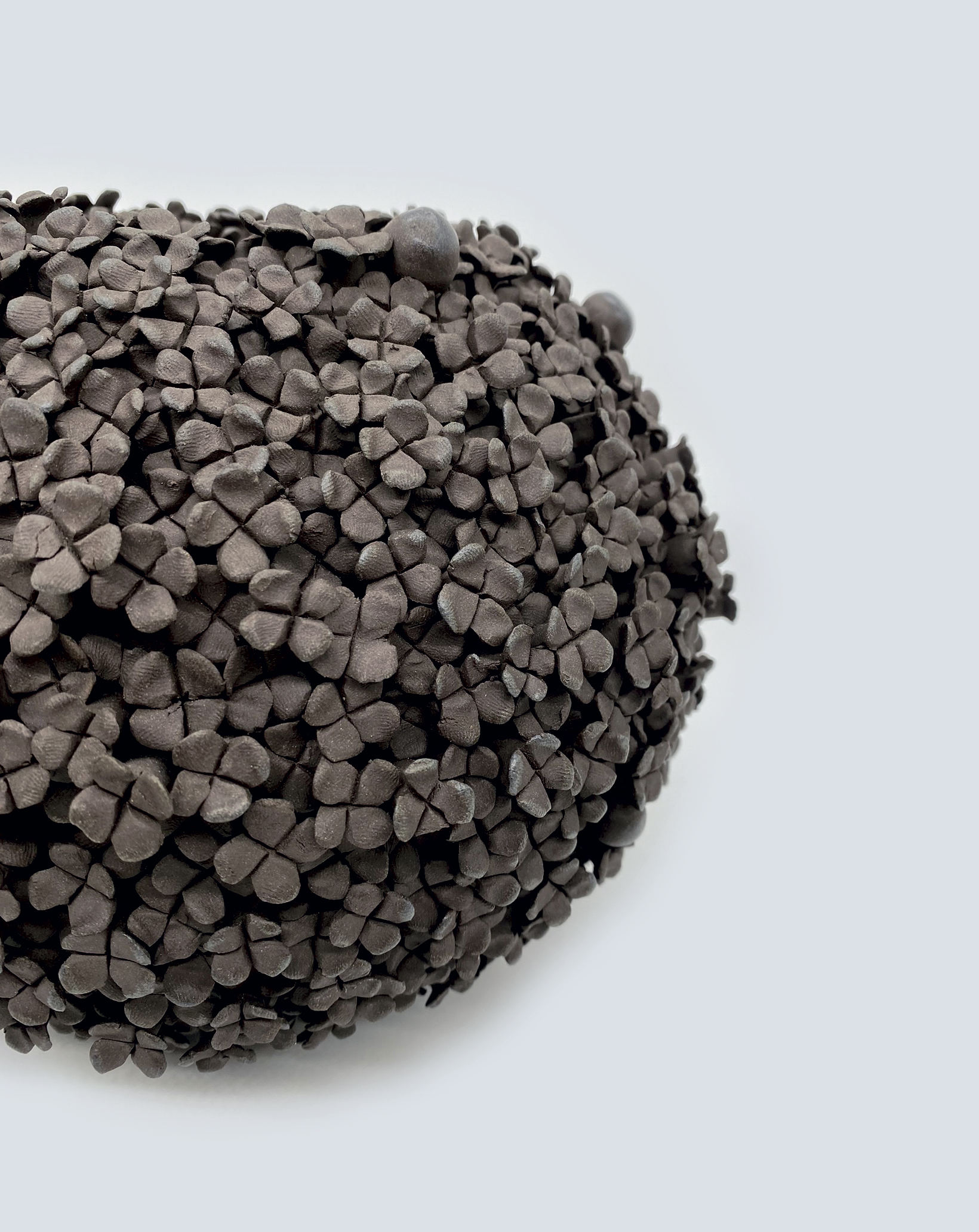 Blomsterdesignet er en hyldest til den ægte blomst og samtidig en mulighed for at have vasen stående som en finurlig blomst i sig selv. Det sorte stentøjsler er på en og samme tid både råt og feminin.