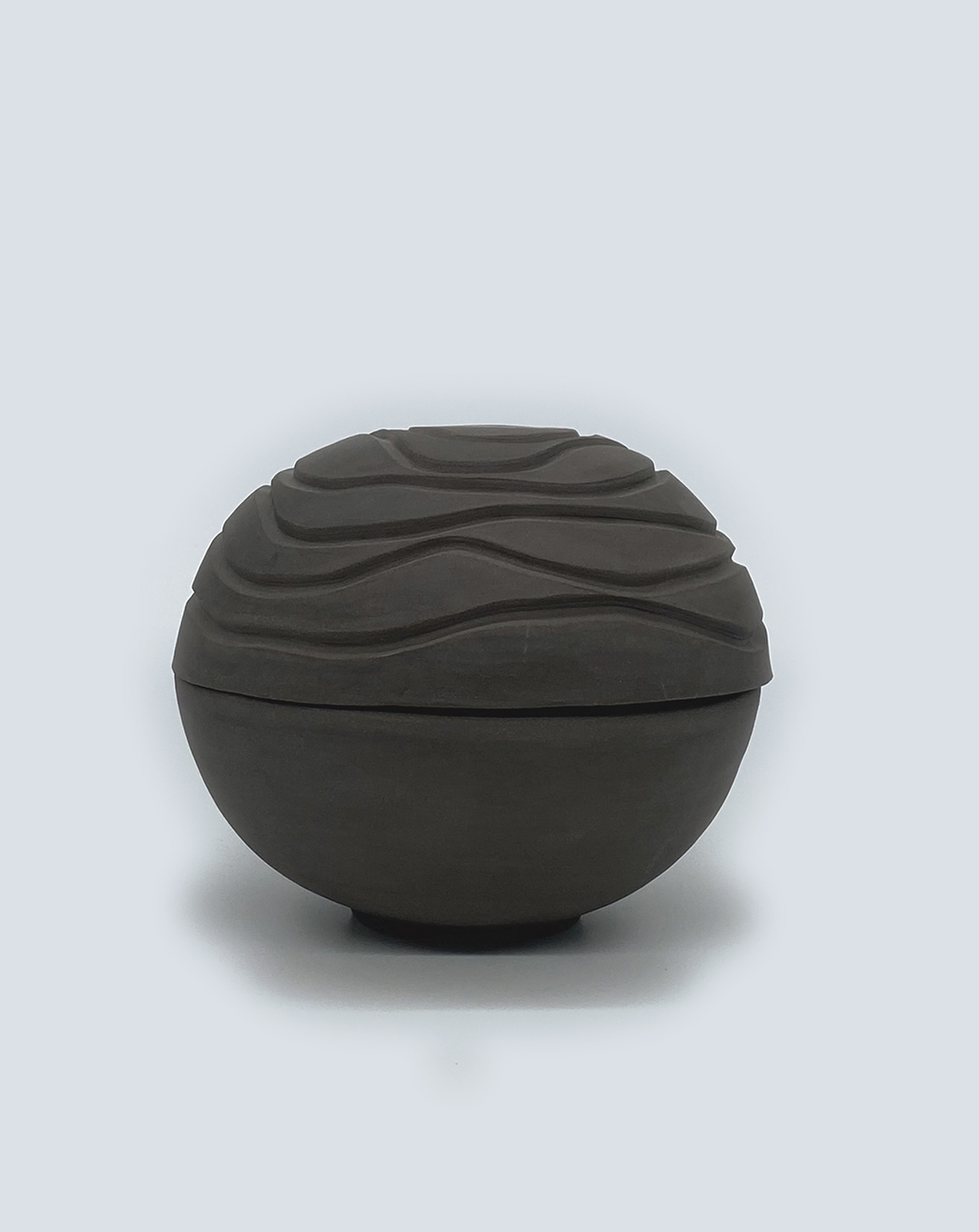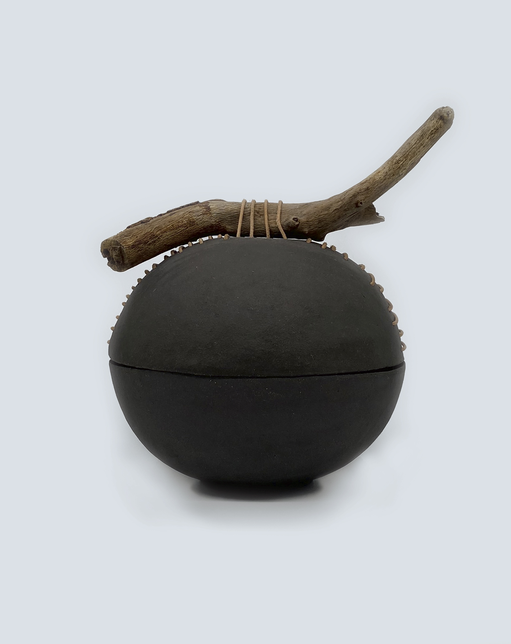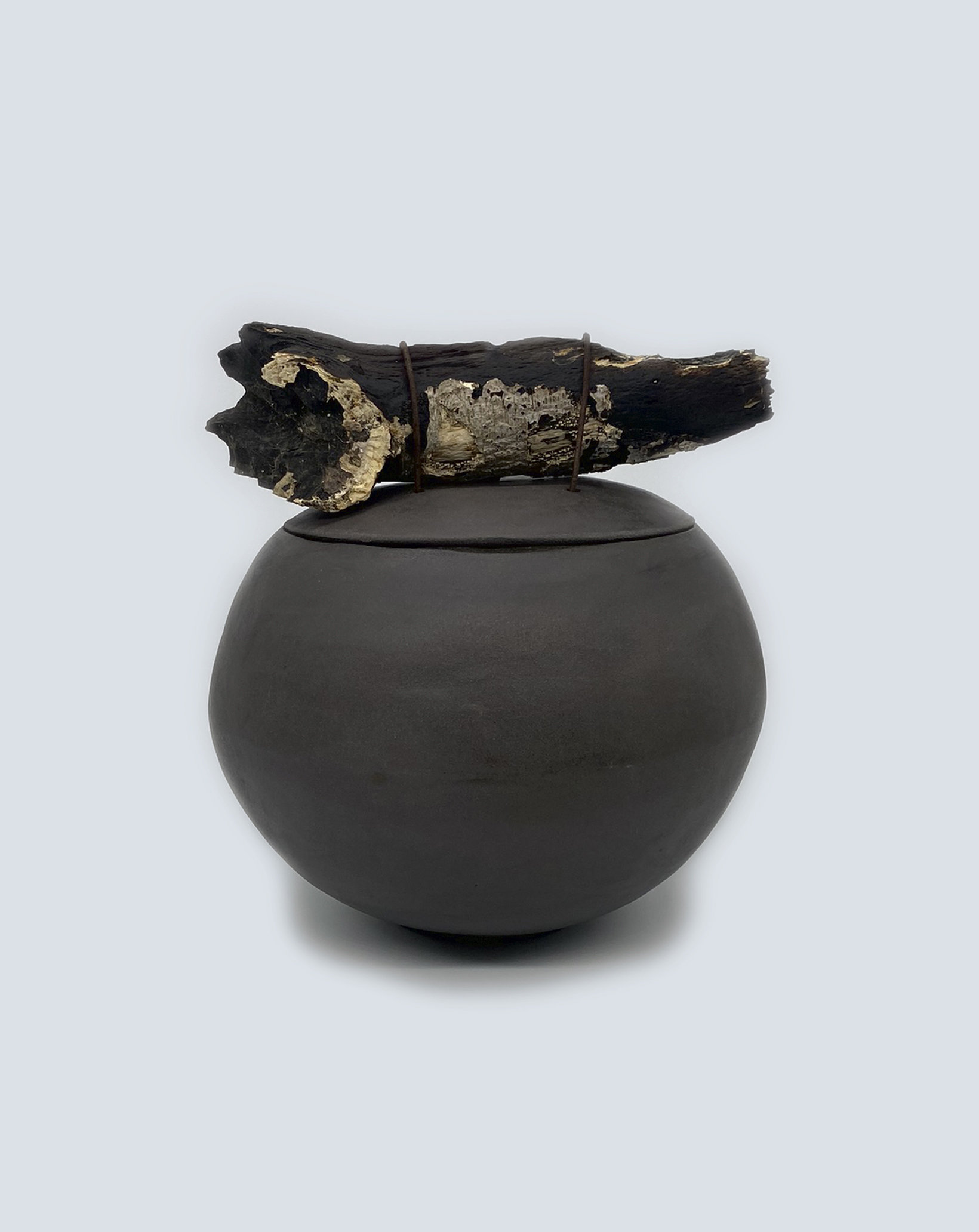 Lågkrukker er magiske. De gemmer på en ydre skønhed og kan have en skat gemt indeni. KOmbinationen af ler, læder, grene, stem mm. har en visuel effekt der er stærk og dragende. kan stå som skulprur i sig selv eller som helt lille stilleben hvis krukken fyldes med fx. husløg og låget stilles dekorativt ved siden af.