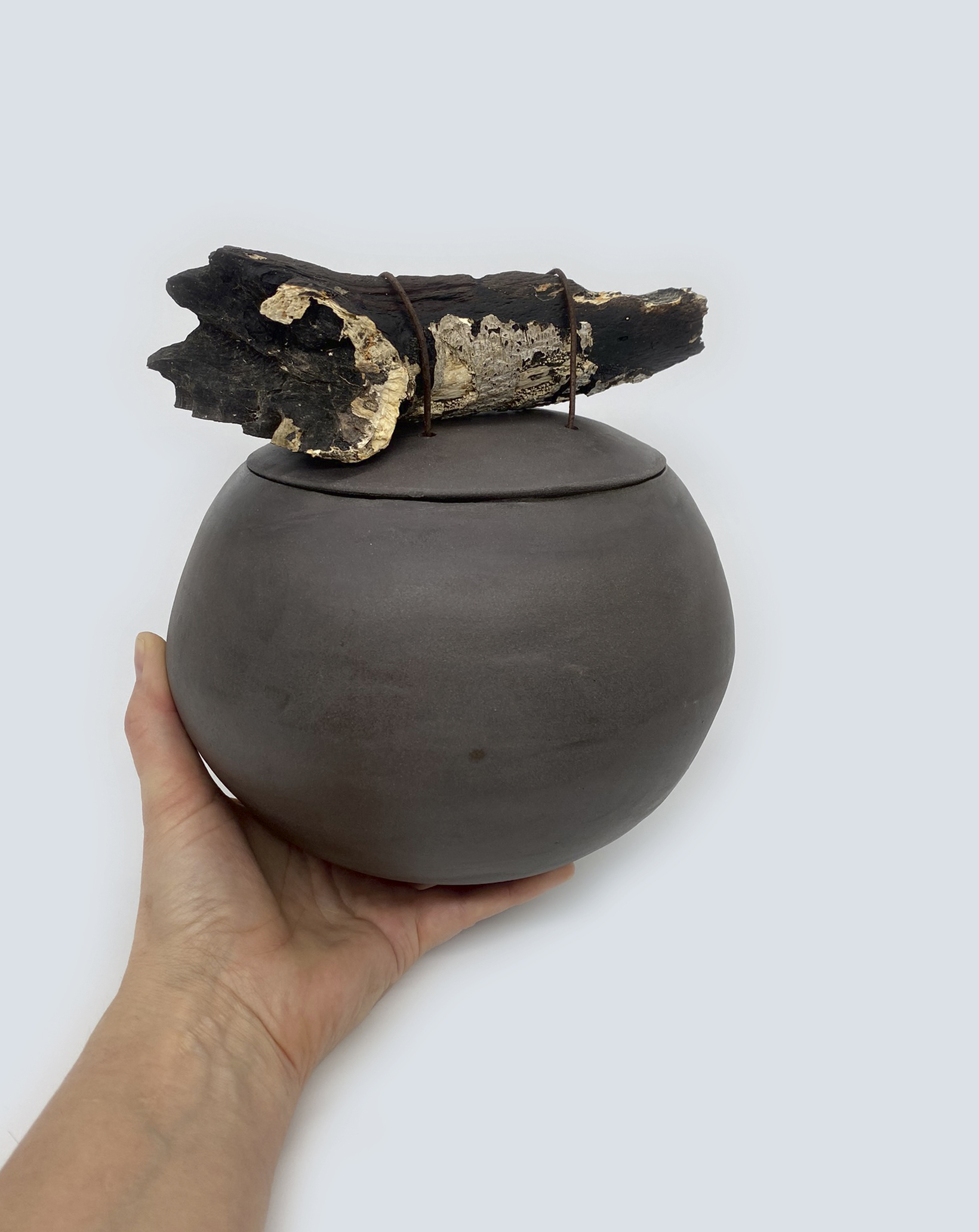 Brug lågkrukken som en skulptur i sig selv, et særligt gemmested eller til planteskjuler og placer låget ved siden af. Et helt naturligt stilleben! Mulighederne er uendelige men der findes kun én lågkrukke som denne…