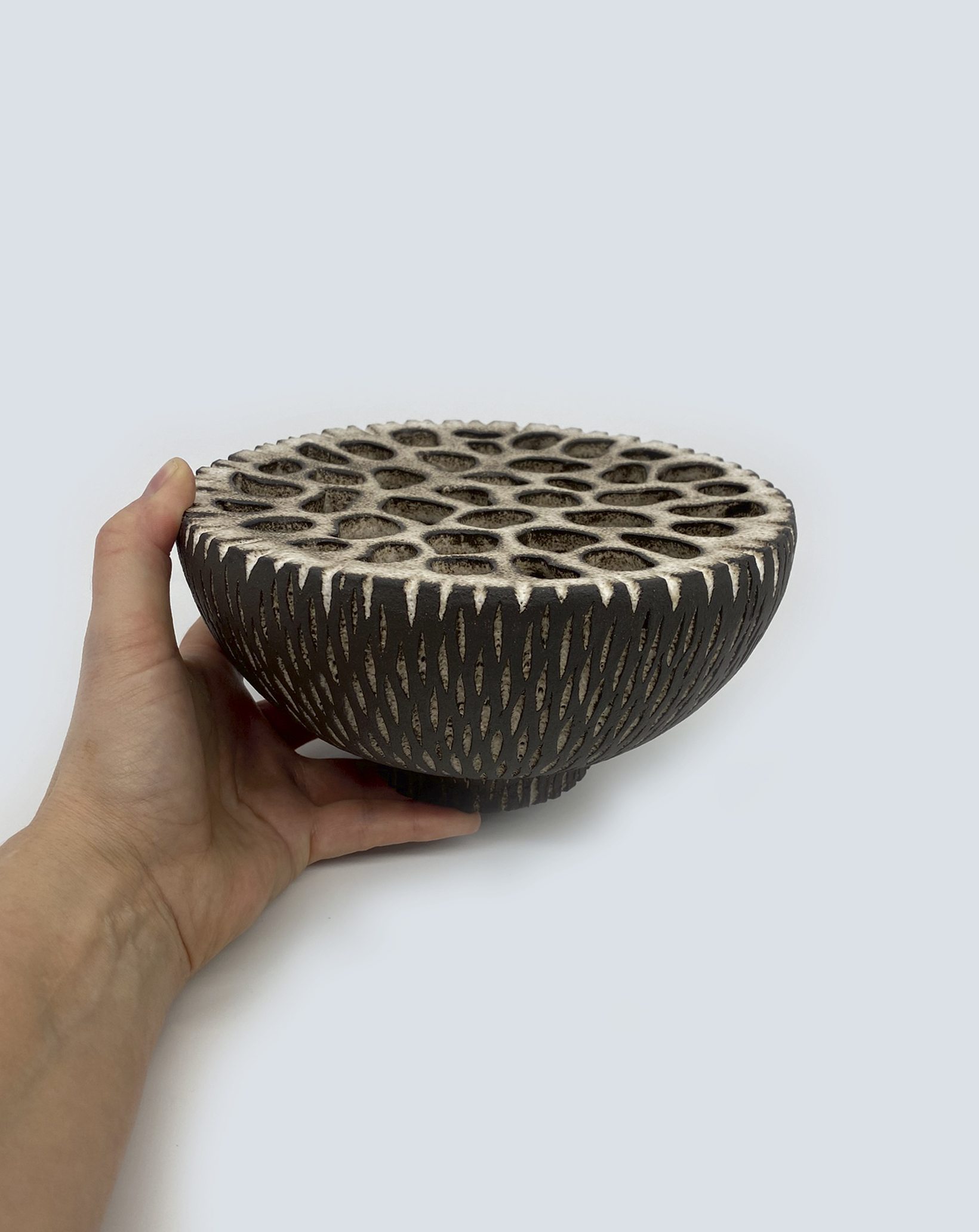 Frøkapslen fra en lotus er inspirationen til denne vase. Lotusen symboliserer renhed, skønhed og åndelig vækst og hvem har ikke lyst til at omgive sig med disse fine ting.