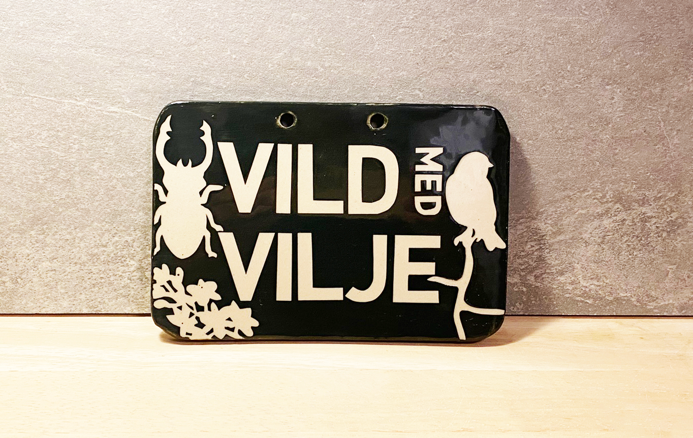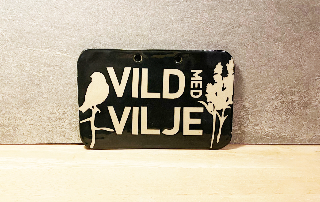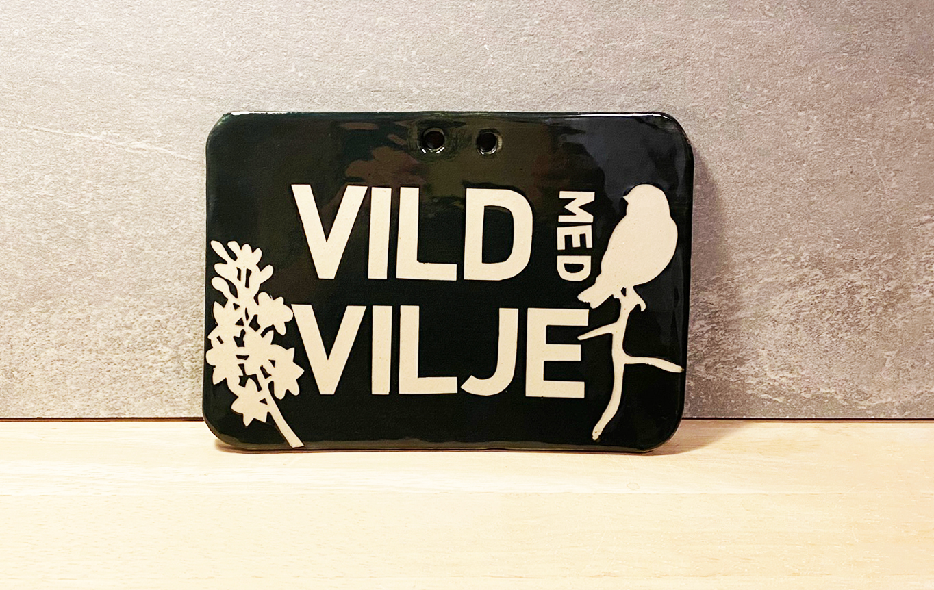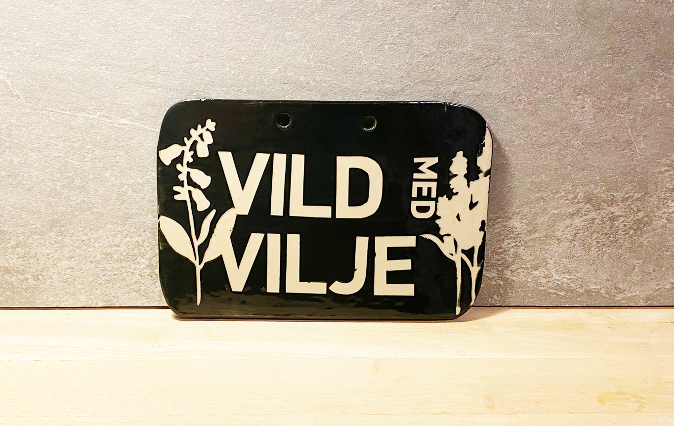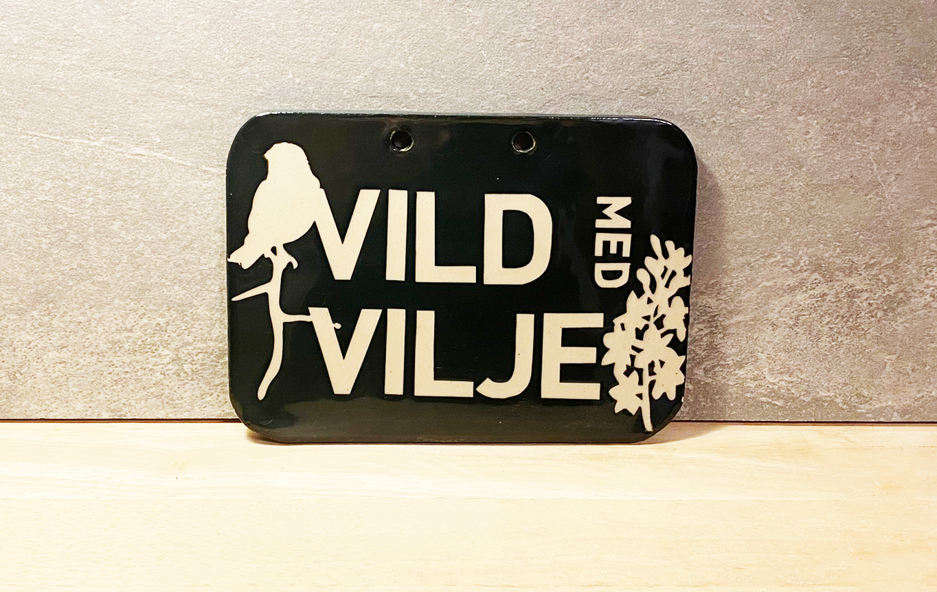 Hold styr på den vilde have med et fint keramikskilt med personlighed. Hver skilt er unikt og der er to varianter: “Vild med vilje” og “Slip haven fri”.